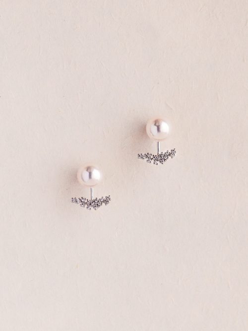 925 Silver Earring Post, Rhodium Plated Ear Jackets, AAA Grade Japanese Akoya Pearl, Highly Reflective And Flawless