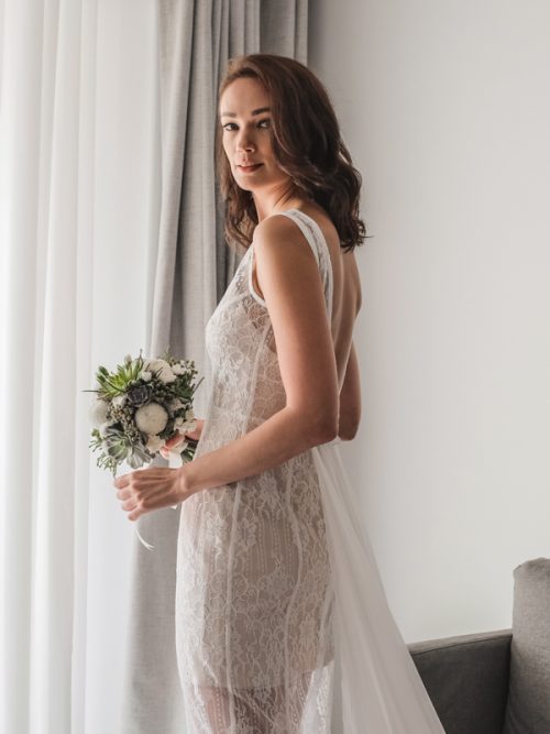 Luxury wedding dress Octavia full lace has fit and flare silhouette.