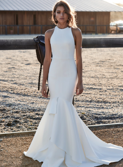 Featuring a high neck and racer back, Queen is the ultimate gown for the modern bride.